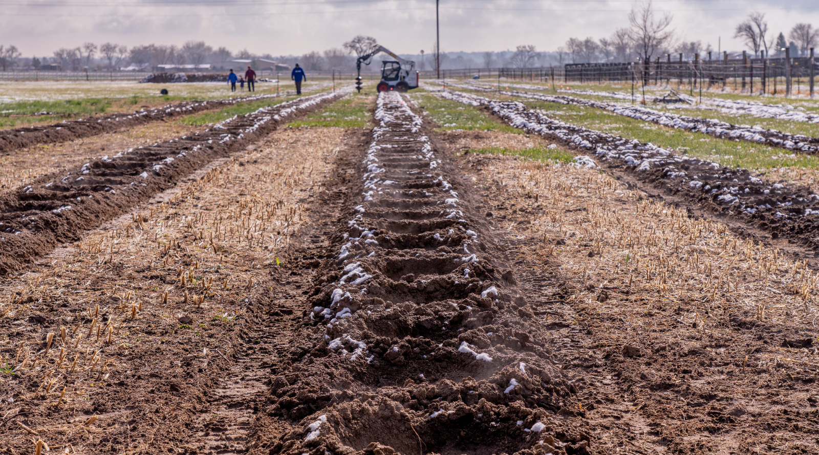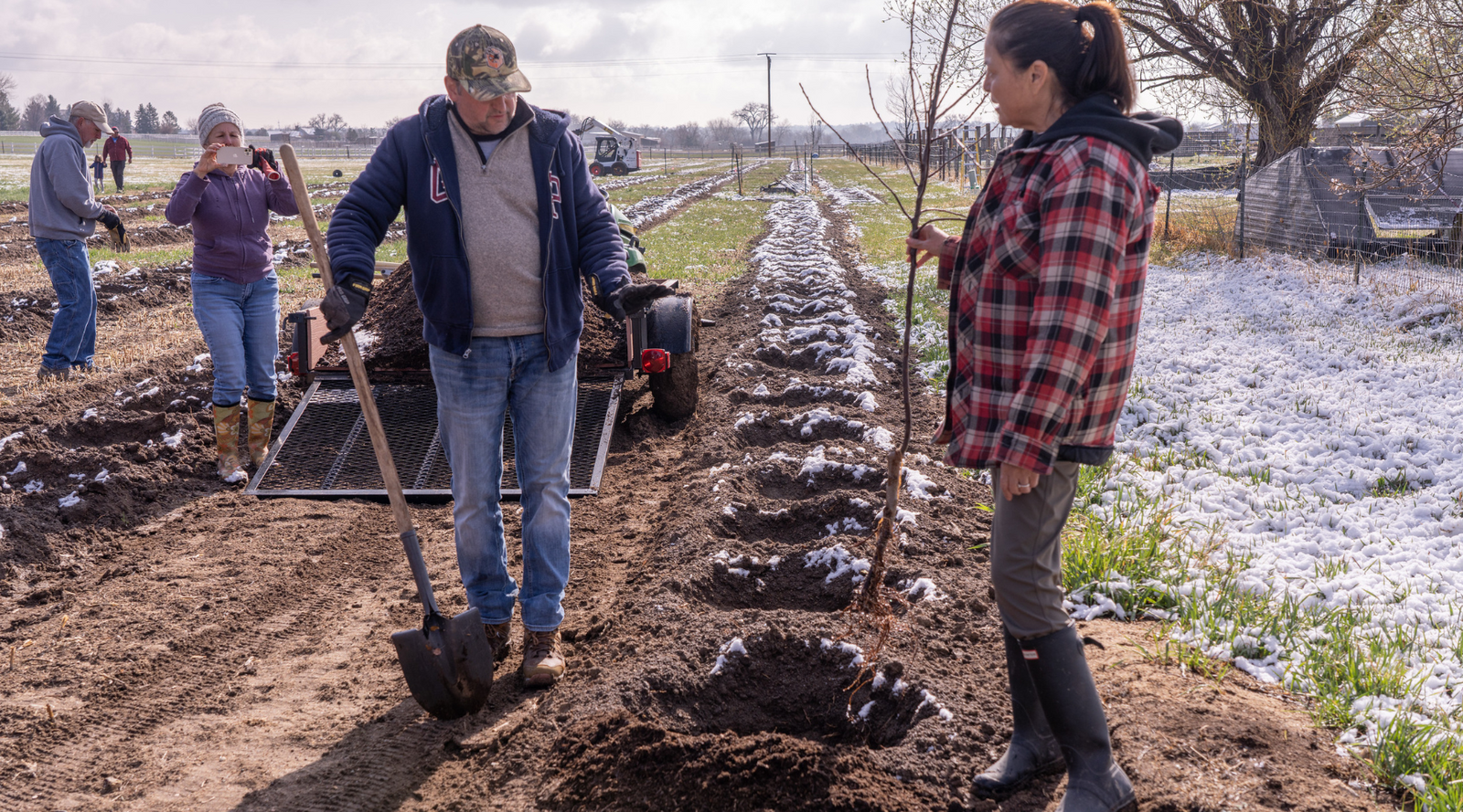 To put this plan in place, it took 18 months of field preparations and a big dose of support from our community. In 2022, Mariposa Farm was awarded a grant from the Sustainable Food and Agriculture Fund of Boulder County. This grant was used to establish the high-density apple orchard.