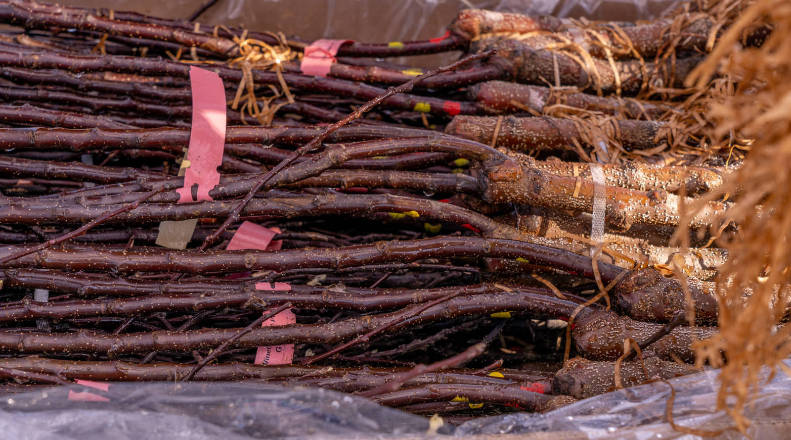 We chose to plant at a high density to ensure our farming is sustainable. In standard orchards where trees are grown 15-25 feet apart, each tree produces only a certain yield depending on the cultivar and quality of the nursery stock. Our newly planted orchard at 1000 trees/acre will produce double the yield of a traditionally planted 500 tree/acre orchard.